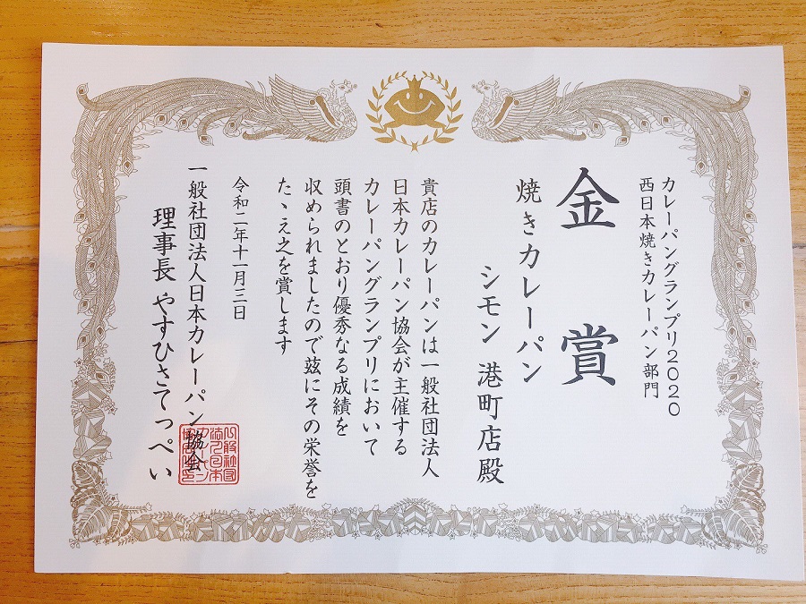 「カレーパングランプリ2020西日本焼きカレーパン部門」で、見事に金賞を受賞致しました!!